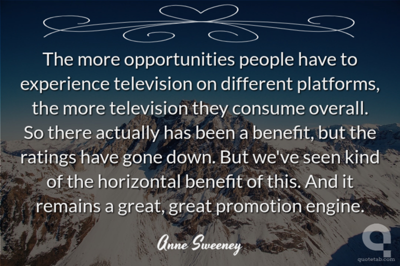 The more opportunities people have to experience television on different platforms, the more television they consume overall. So there actually has been a benefit, but the ratings have gone down. But we've seen kind of the horizontal benefit of this. And it remains a great, great promotion engine.
