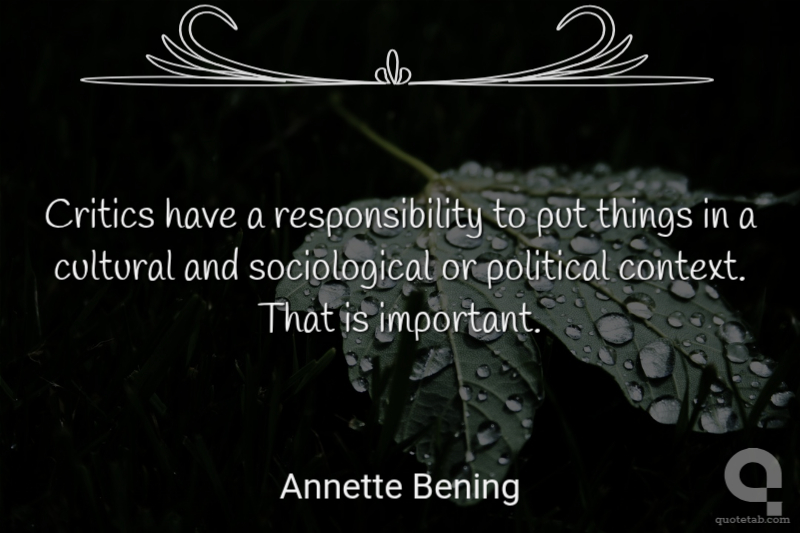 Critics have a responsibility to put things in a cultural and sociological or political context. That is important.