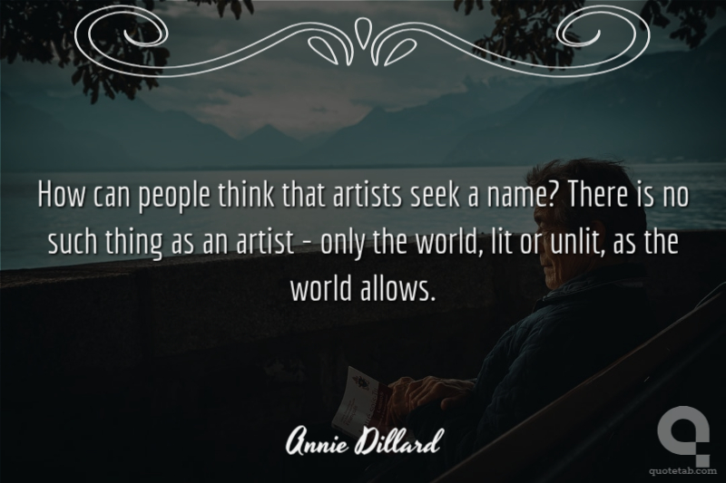 How can people think that artists seek a name? There is no such thing as an artist - only the world, lit or unlit, as the world allows.
