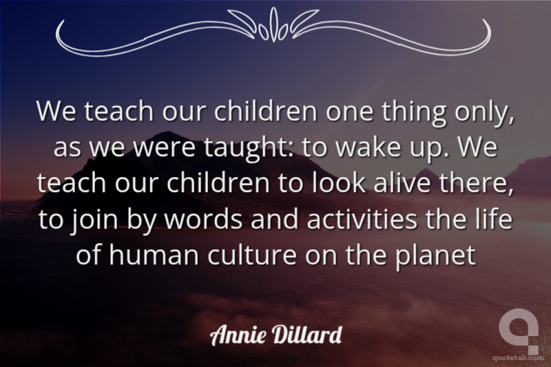 We teach our children one thing only, as we were taught: to wake up. We teach our children to look alive there, to join by words and activities the life of human culture on the planet