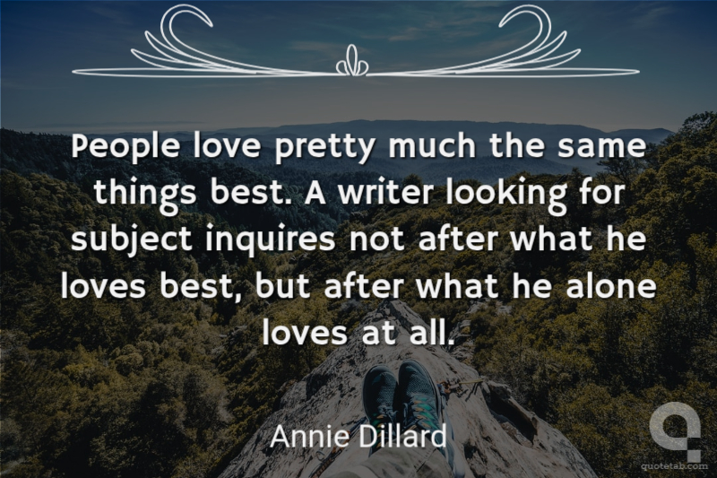 People love pretty much the same things best. A writer looking for subject inquires not after what he loves best, but after what he alone loves at all.