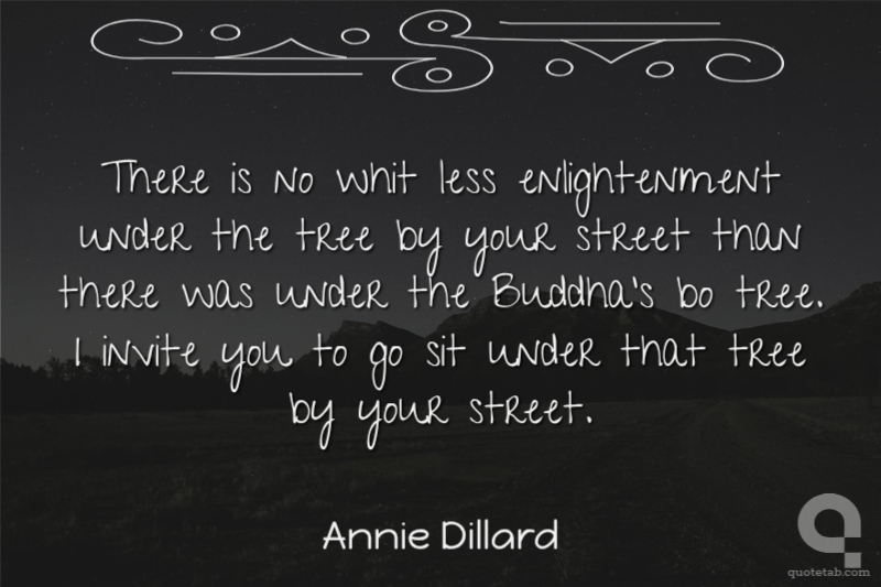 There is no whit less enlightenment under the tree by your street than there was under the Buddha's bo tree. I invite you to go sit under that tree by your street.