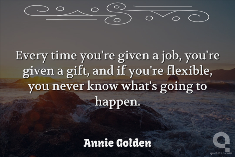 Every time you're given a job, you're given a gift, and if you're flexible, you never know what's going to happen.