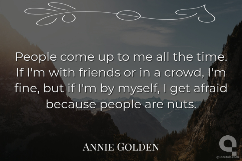 People come up to me all the time. If I'm with friends or in a crowd, I'm fine, but if I'm by myself, I get afraid because people are nuts.