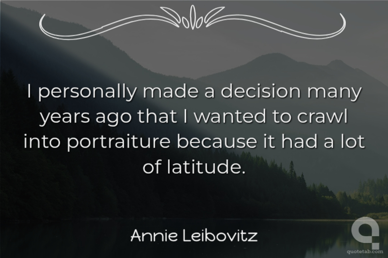 I personally made a decision many years ago that I wanted to crawl into portraiture because it had a lot of latitude.