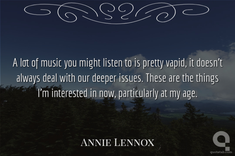 A lot of music you might listen to is pretty vapid, it doesn't always deal with our deeper issues. These are the things I'm interested in now, particularly at my age.