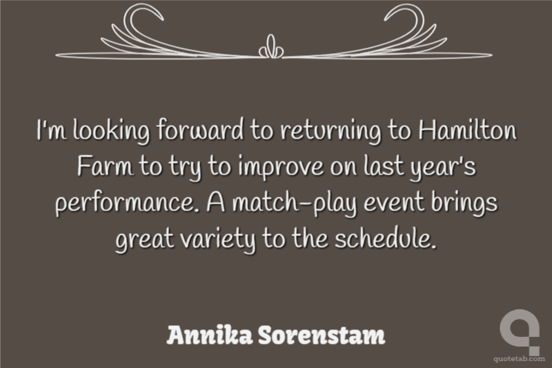 I'm looking forward to returning to Hamilton Farm to try to improve on last year's performance. A match-play event brings great variety to the schedule.