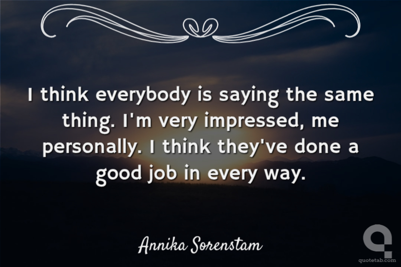 I think everybody is saying the same thing. I'm very impressed, me personally. I think they've done a good job in every way.
