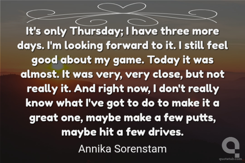 It's only Thursday; I have three more days. I'm looking forward to it. I still feel good about my game. Today it was almost. It was very, very close, but not really it. And right now, I don't really know what I've got to do to make it a great one, maybe make a few putts, maybe hit a few drives.