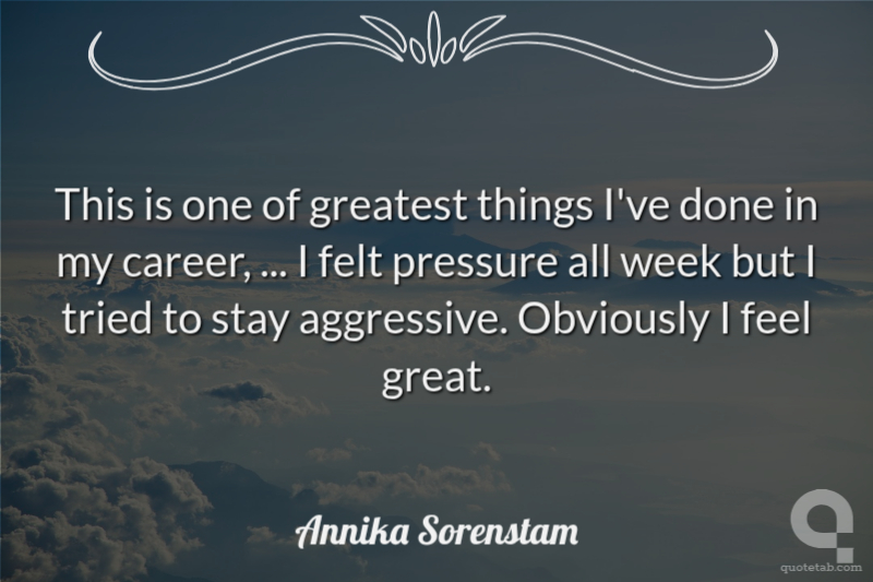 This is one of greatest things I've done in my career, ... I felt pressure all week but I tried to stay aggressive. Obviously I feel great.