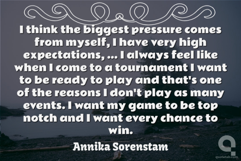 I think the biggest pressure comes from myself, I have very high expectations, ... I always feel like when I come to a tournament I want to be ready to play and that's one of the reasons I don't play as many events. I want my game to be top notch and I want every chance to win.