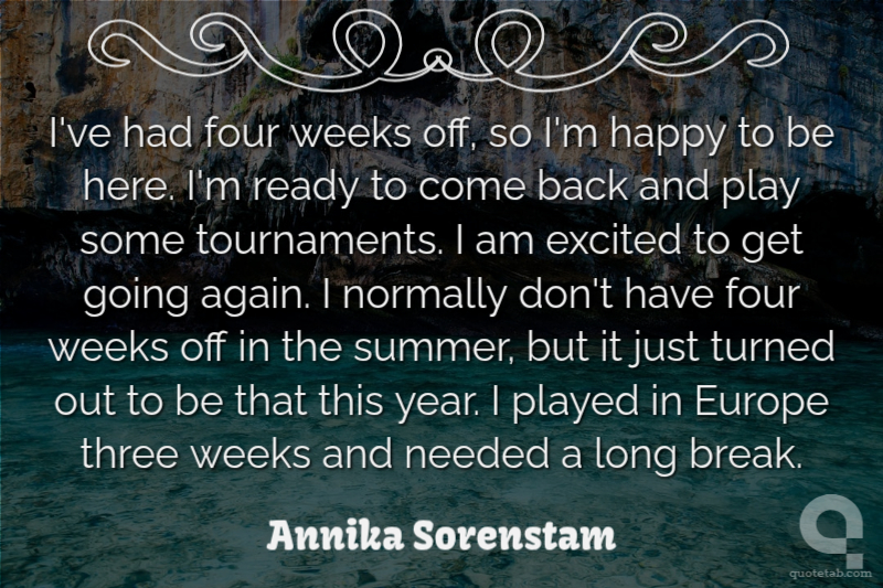 I've had four weeks off, so I'm happy to be here. I'm ready to come back and play some tournaments. I am excited to get going again. I normally don't have four weeks off in the summer, but it just turned out to be that this year. I played in Europe three weeks and needed a long break.