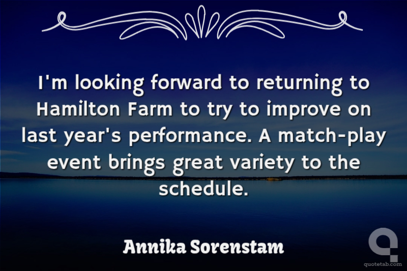 I'm looking forward to returning to Hamilton Farm to try to improve on last year's performance. A match-play event brings great variety to the schedule.
