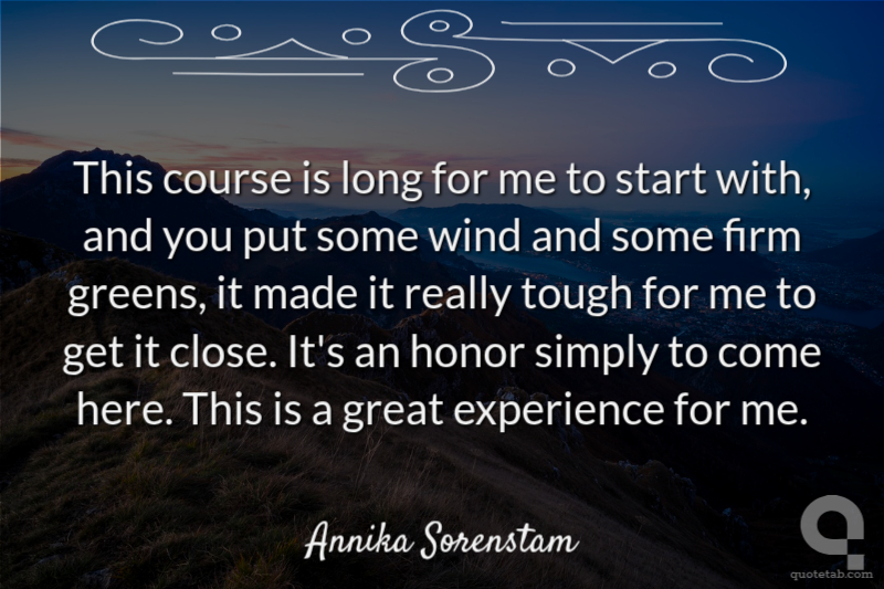 This course is long for me to start with, and you put some wind and some firm greens, it made it really tough for me to get it close. It's an honor simply to come here. This is a great experience for me.