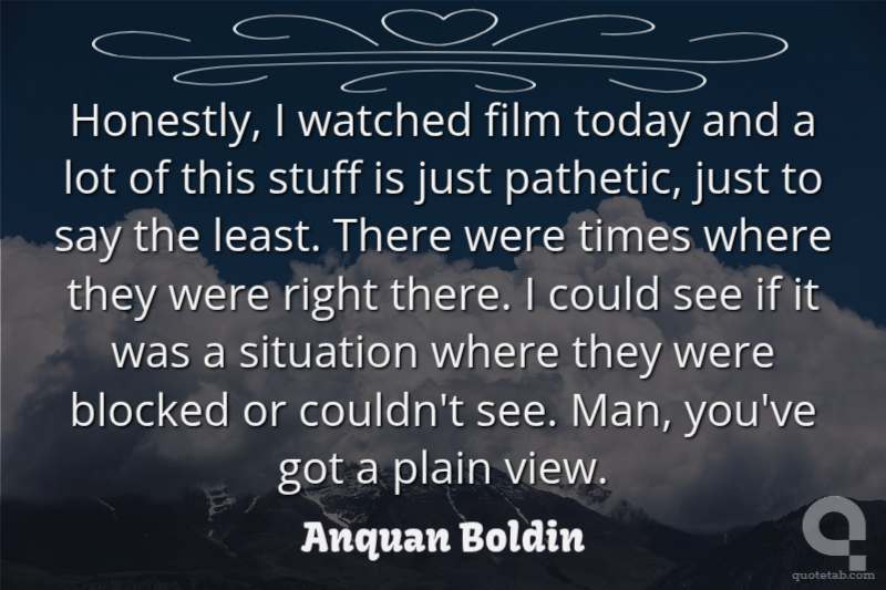 Honestly, I watched film today and a lot of this stuff is just pathetic, just to say the least. There were times where they were right there. I could see if it was a situation where they were blocked or couldn't see. Man, you've got a plain view.