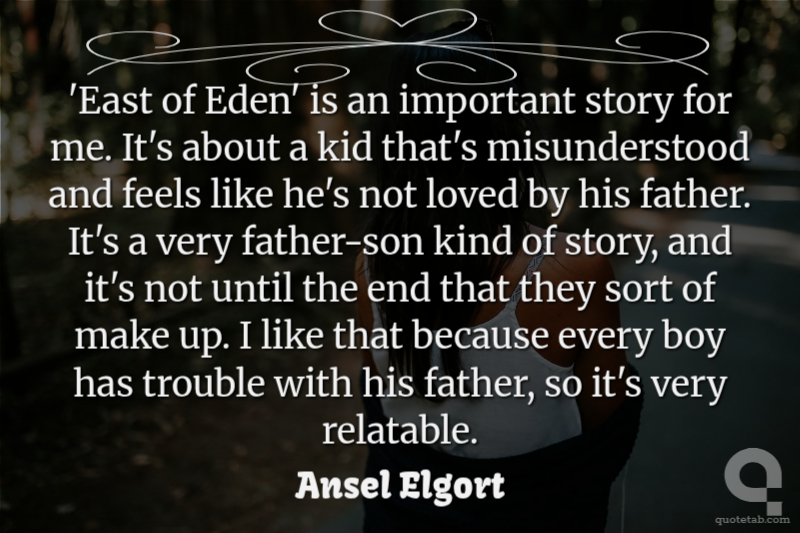 'East of Eden' is an important story for me. It's about a kid that's misunderstood and feels like he's not loved by his father. It's a very father-son kind of story, and it's not until the end that they sort of make up. I like that because every boy has trouble with his father, so it's very relatable.