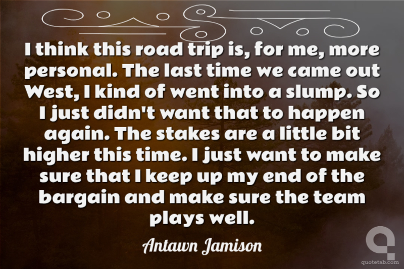 I think this road trip is, for me, more personal. The last time we came out West, I kind of went into a slump. So I just didn't want that to happen again. The stakes are a little bit higher this time. I just want to make sure that I keep up my end of the bargain and make sure the team plays well.