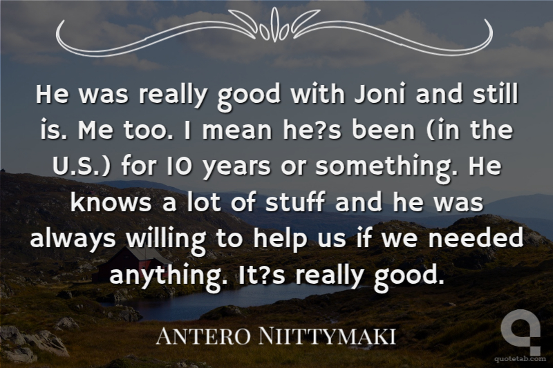 He was really good with Joni and still is. Me too. I mean he?s been (in the U.S.) for 10 years or something. He knows a lot of stuff and he was always willing to help us if we needed anything. It?s really good.