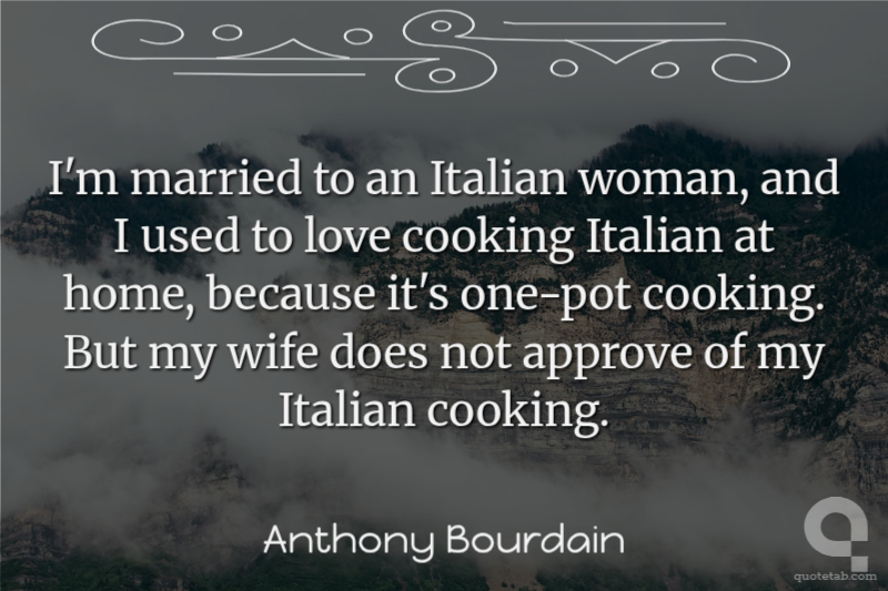 I'm married to an Italian woman, and I used to love cooking Italian at home, because it's one-pot cooking. But my wife does not approve of my Italian cooking.