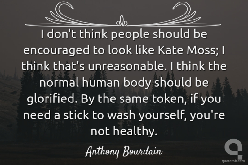 I don't think people should be encouraged to look like Kate Moss; I think that's unreasonable. I think the normal human body should be glorified. By the same token, if you need a stick to wash yourself, you're not healthy.
