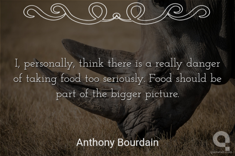 I, personally, think there is a really danger of taking food too seriously. Food should be part of the bigger picture.