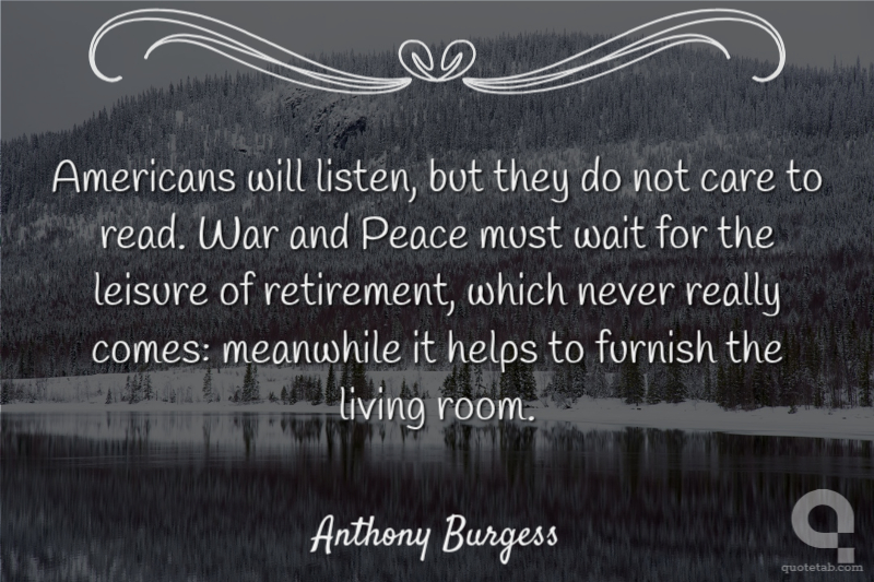 Americans will listen, but they do not care to read. War and Peace must wait for the leisure of retirement, which never really comes: meanwhile it helps to furnish the living room.