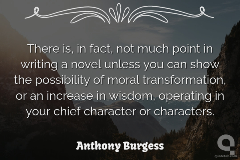 There is, in fact, not much point in writing a novel unless you can show the possibility of moral transformation, or an increase in wisdom, operating in your chief character or characters.