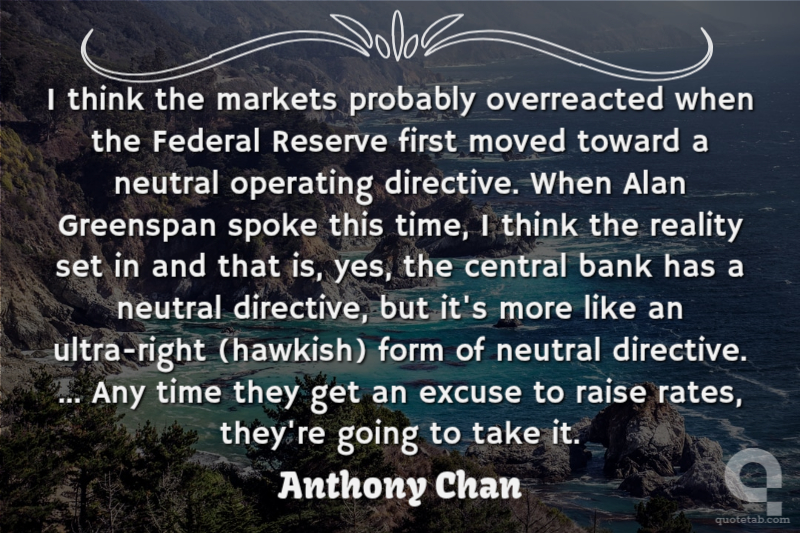 I think the markets probably overreacted when the Federal Reserve first moved toward a neutral operating directive. When Alan Greenspan spoke this time, I think the reality set in and that is, yes, the central bank has a neutral directive, but it's more like an ultra-right (hawkish) form of neutral directive. ... Any time they get an excuse to raise rates, they're going to take it.
