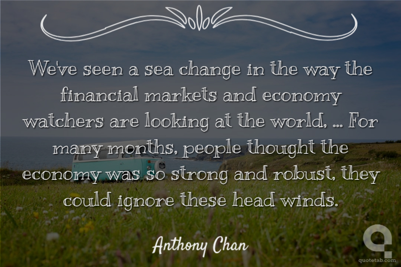 We've seen a sea change in the way the financial markets and economy watchers are looking at the world, ... For many months, people thought the economy was so strong and robust, they could ignore these head winds.