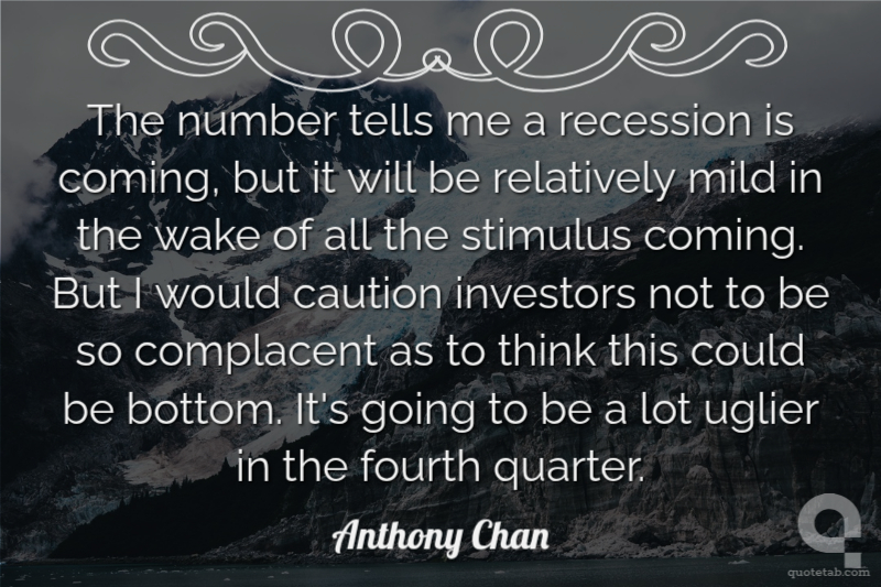 The number tells me a recession is coming, but it will be relatively mild in the wake of all the stimulus coming. But I would caution investors not to be so complacent as to think this could be bottom. It's going to be a lot uglier in the fourth quarter.