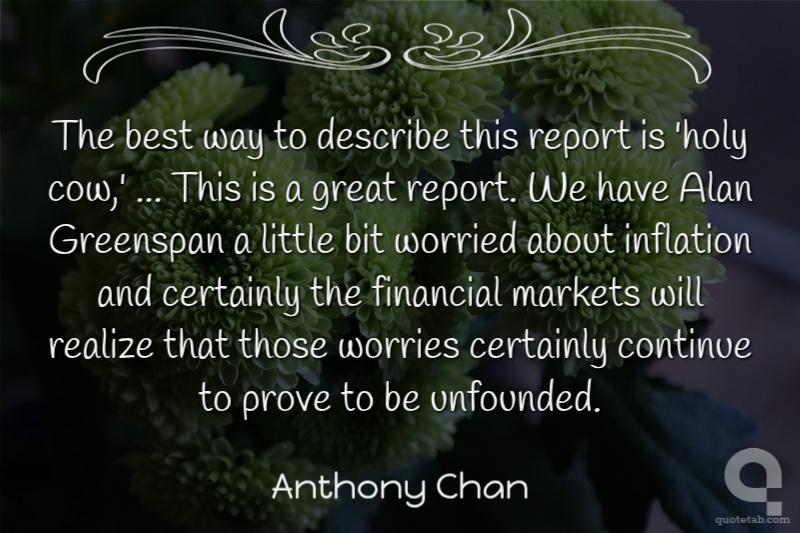 The best way to describe this report is 'holy cow,' ... This is a great report. We have Alan Greenspan a little bit worried about inflation and certainly the financial markets will realize that those worries certainly continue to prove to be unfounded.