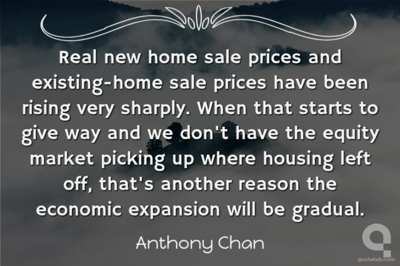 Real new home sale prices and existing-home sale prices have been rising very sharply. When that starts to give way and we don't have the equity market picking up where housing left off, that's another reason the economic expansion will be gradual.