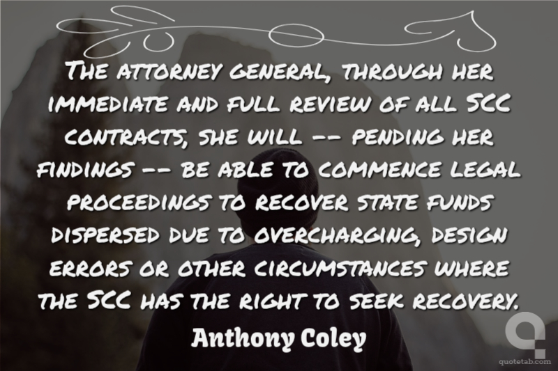 The attorney general, through her immediate and full review of all SCC contracts, she will -- pending her findings -- be able to commence legal proceedings to recover state funds dispersed due to overcharging, design errors or other circumstances where the SCC has the right to seek recovery.