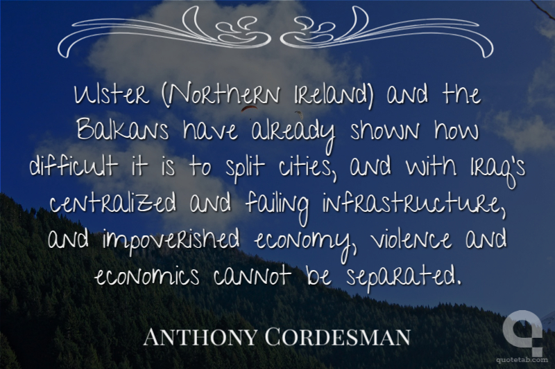 Ulster (Northern Ireland) and the Balkans have already shown how difficult it is to split cities, and with Iraq's centralized and failing infrastructure, and impoverished economy, violence and economics cannot be separated.