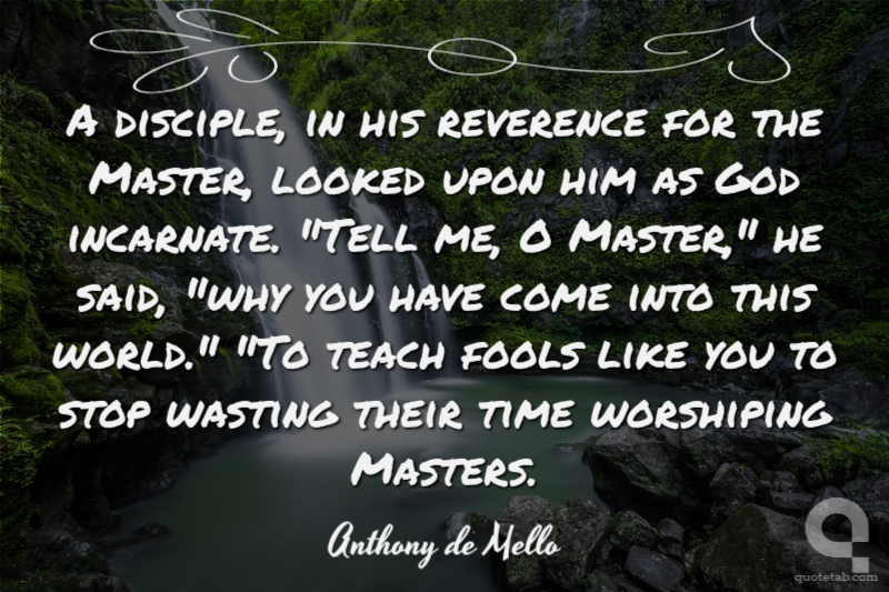A disciple, in his reverence for the Master, looked upon him as God incarnate. "Tell me, O Master," he said, "why you have come into this world." "To teach fools like you to stop wasting their time worshiping Masters.
