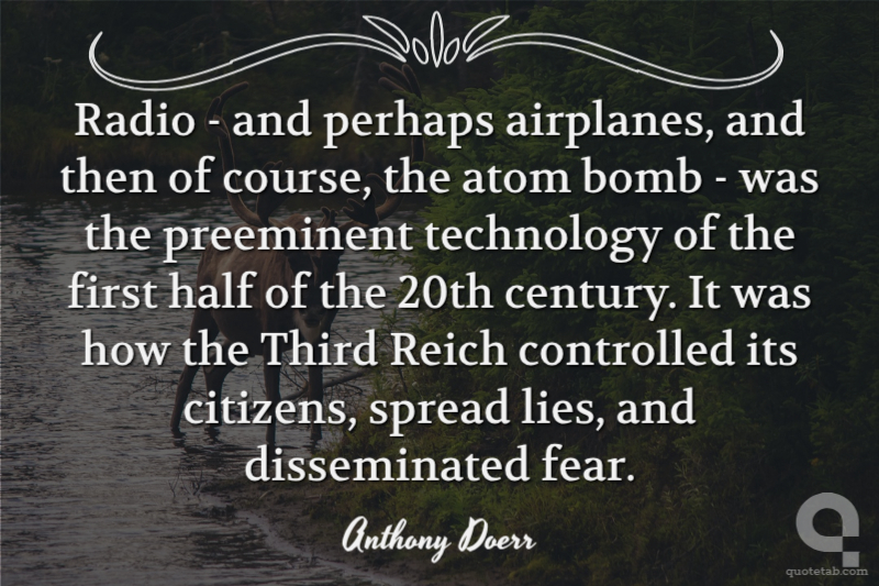Radio - and perhaps airplanes, and then of course, the atom bomb - was the preeminent technology of the first half of the 20th century. It was how the Third Reich controlled its citizens, spread lies, and disseminated fear.