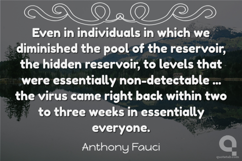 Even in individuals in which we diminished the pool of the reservoir, the hidden reservoir, to levels that were essentially non-detectable ... the virus came right back within two to three weeks in essentially everyone.