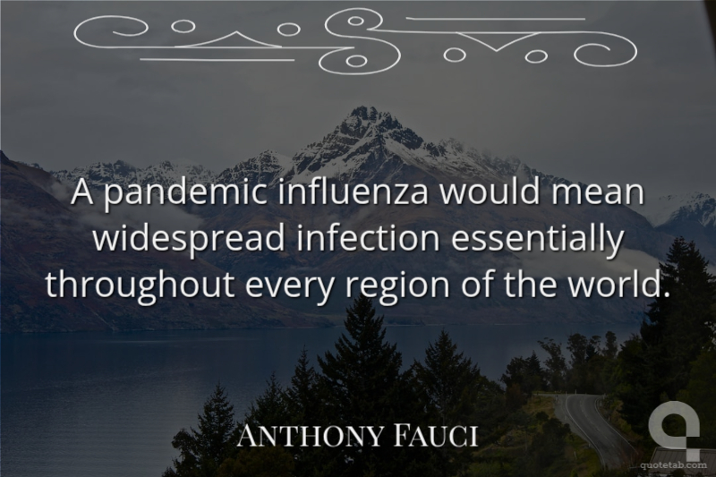 A pandemic influenza would mean widespread infection essentially throughout every region of the world.