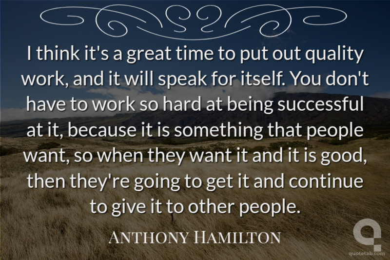 I think it's a great time to put out quality work, and it will speak for itself. You don't have to work so hard at being successful at it, because it is something that people want, so when they want it and it is good, then they're going to get it and continue to give it to other people.