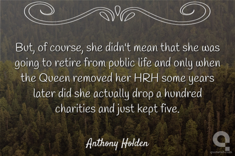 But, of course, she didn't mean that she was going to retire from public life and only when the Queen removed her HRH some years later did she actually drop a hundred charities and just kept five.