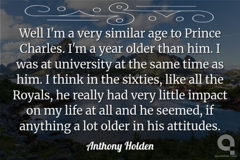 Well I'm a very similar age to Prince Charles. I'm a year older than him. I was at university at the same time as him. I think in the sixties, like all the Royals, he really had very little impact on my life at all and he seemed, if anything a lot older in his attitudes.