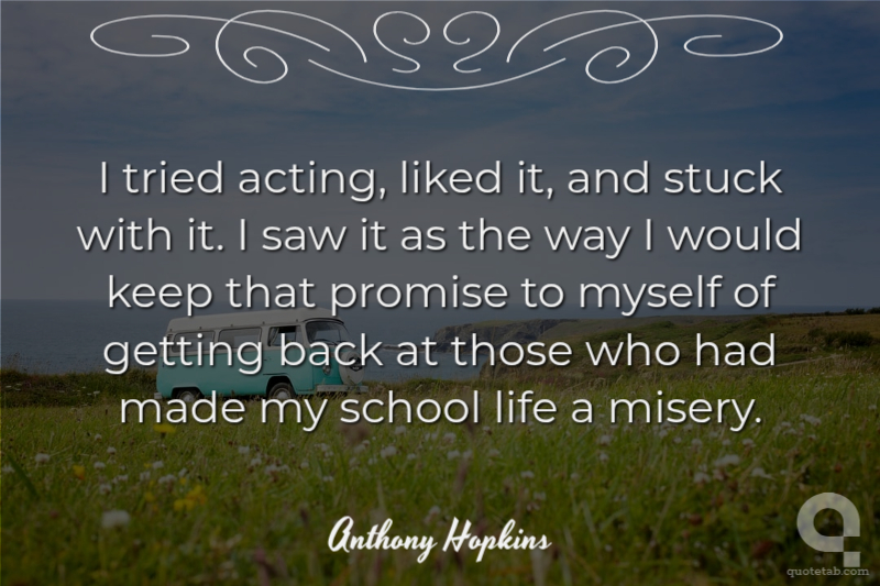 I tried acting, liked it, and stuck with it. I saw it as the way I would keep that promise to myself of getting back at those who had made my school life a misery.