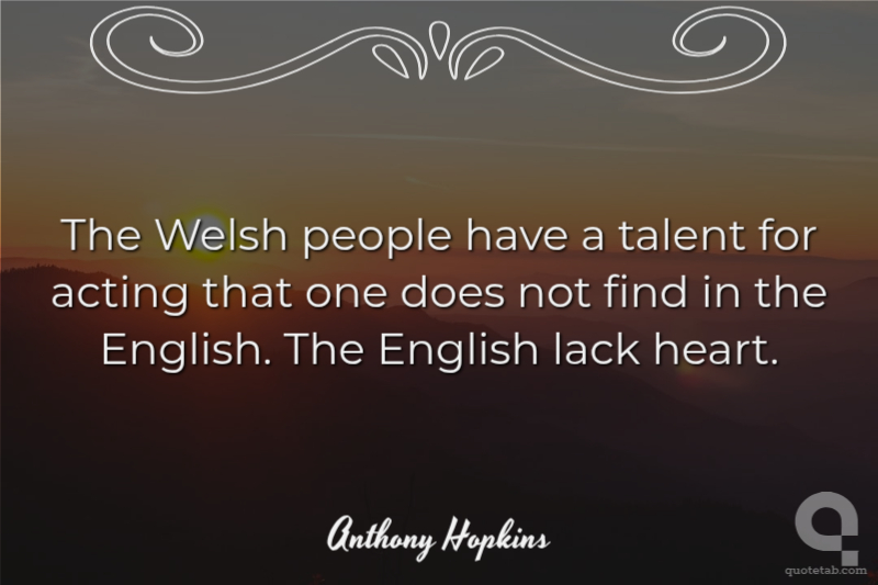 The Welsh people have a talent for acting that one does not find in the English. The English lack heart.