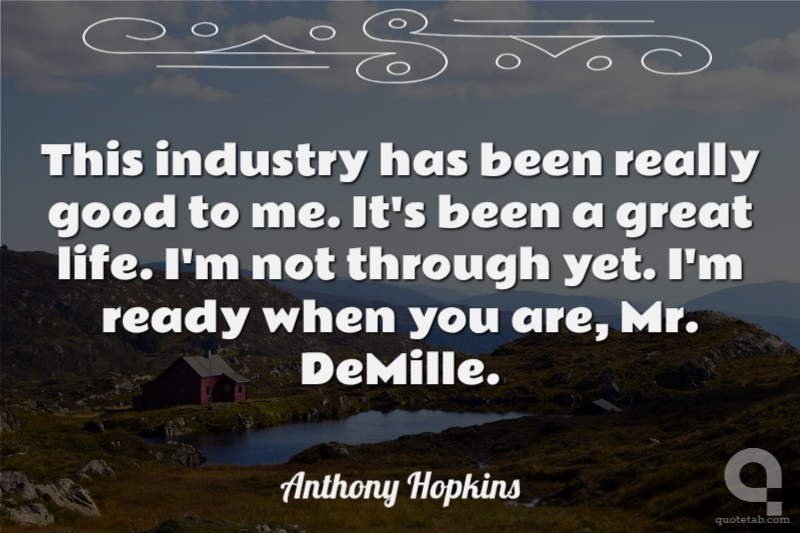 This industry has been really good to me. It's been a great life. I'm not through yet. I'm ready when you are, Mr. DeMille.