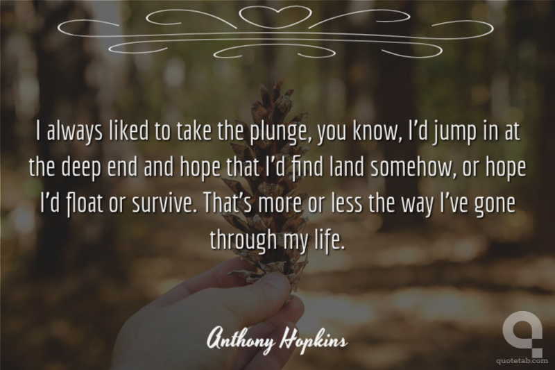 I always liked to take the plunge, you know, I'd jump in at the deep end and hope that I'd find land somehow, or hope I'd float or survive. That's more or less the way I've gone through my life.