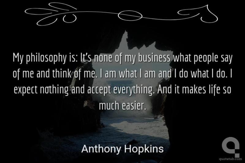 My philosophy is: It's none of my business what people say of me and think of me. I am what I am and I do what I do. I expect nothing and accept everything. And it makes life so much easier.