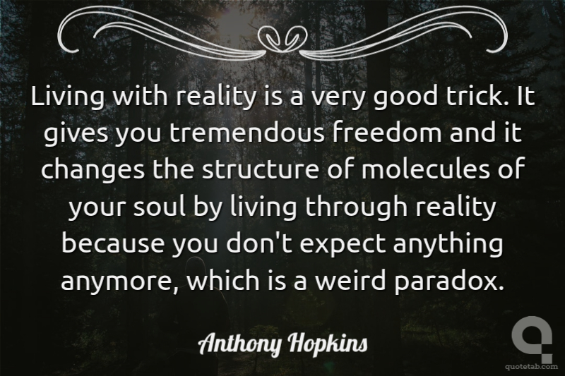 Living with reality is a very good trick. It gives you tremendous freedom and it changes the structure of molecules of your soul by living through reality because you don't expect anything anymore, which is a weird paradox.
