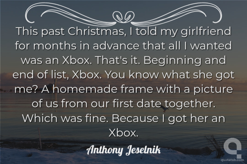 This past Christmas, I told my girlfriend for months in advance that all I wanted was an Xbox. That's it. Beginning and end of list, Xbox. You know what she got me? A homemade frame with a picture of us from our first date together. Which was fine. Because I got her an Xbox.