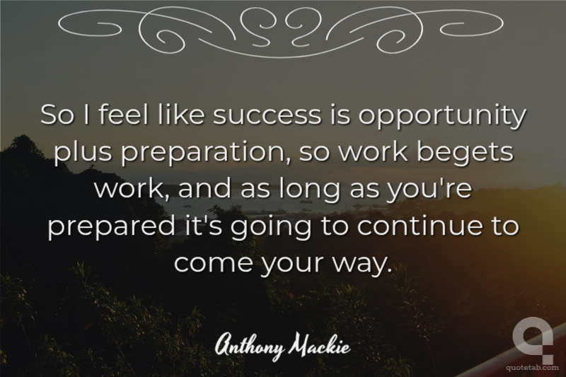 So I feel like success is opportunity plus preparation, so work begets work, and as long as you're prepared it's going to continue to come your way.