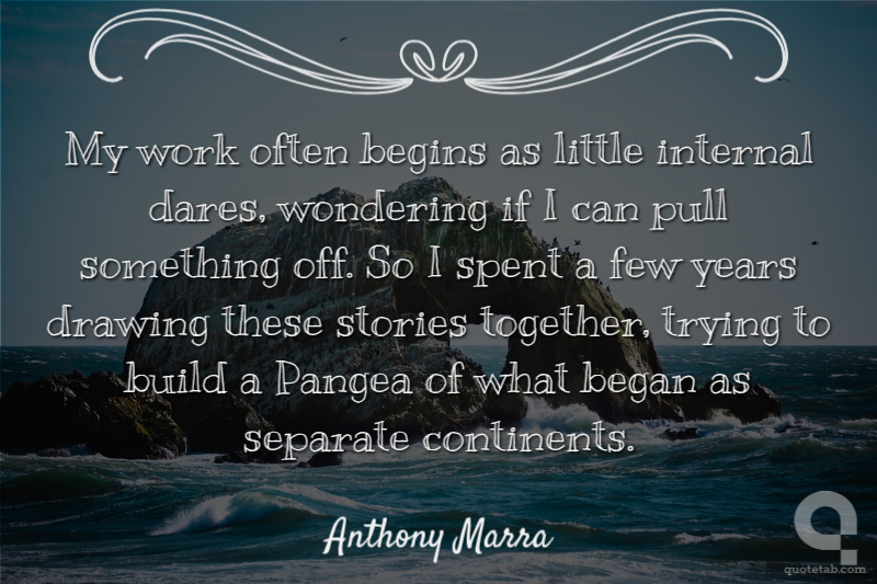 My work often begins as little internal dares, wondering if I can pull something off. So I spent a few years drawing these stories together, trying to build a Pangea of what began as separate continents.